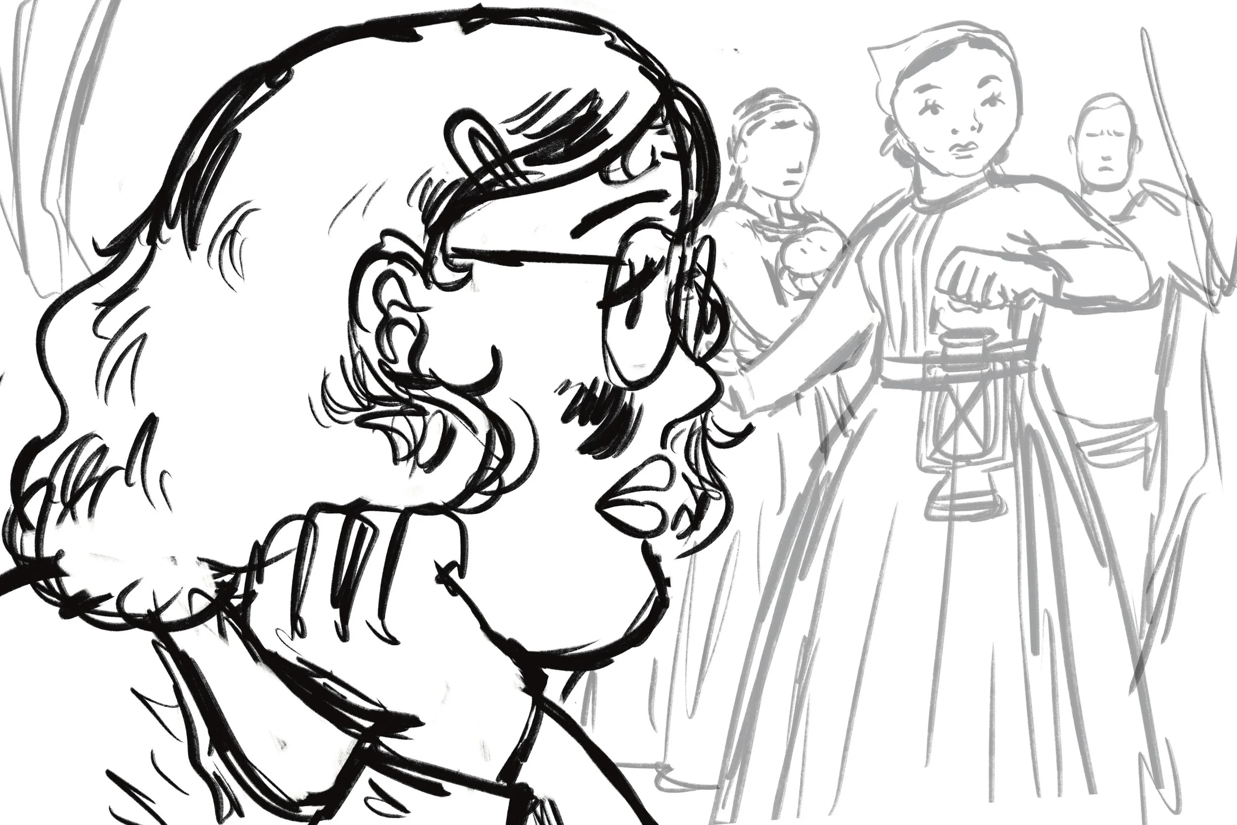 I wanted to show an eagerness for knowledge by portraying students and teachers engaged in the information and the people they’re learning about.