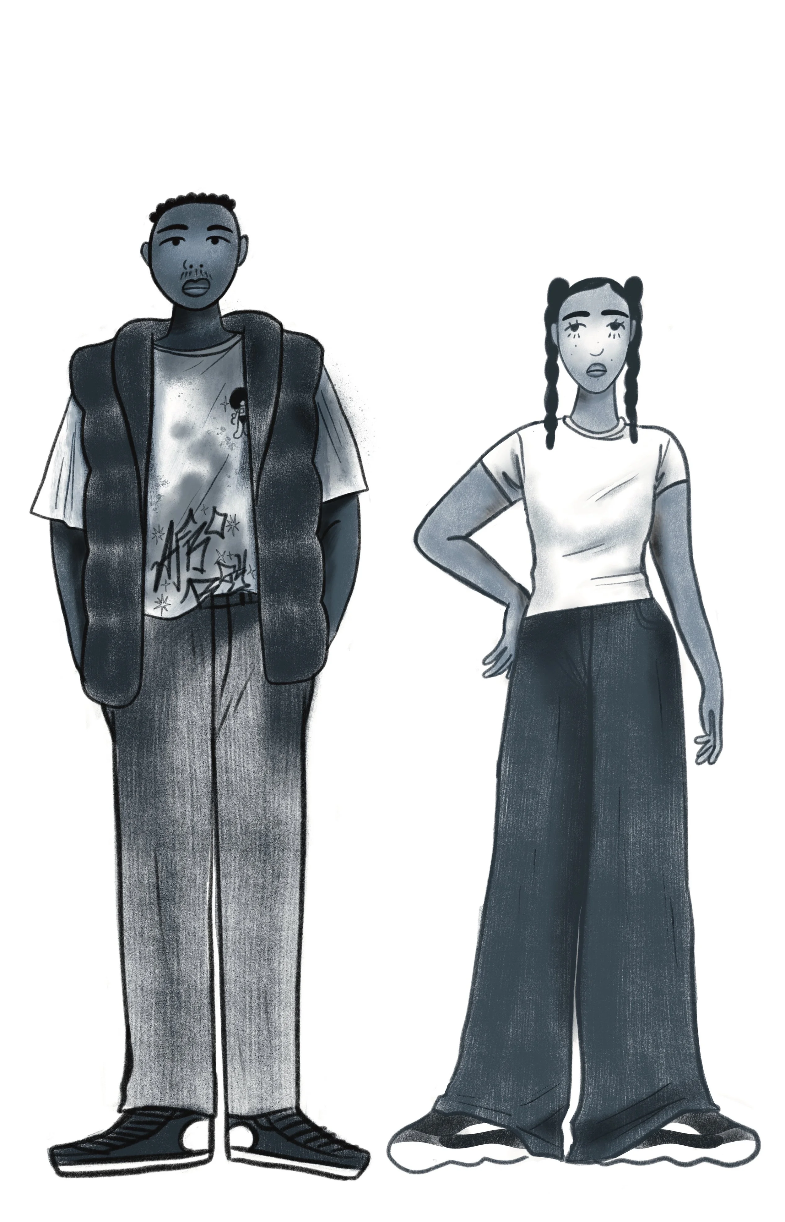 Final designs for main characters: Kira and Sedale